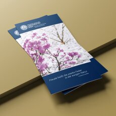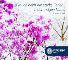 Klappkarte Fotomotive – mit einem verschneiten blühenden Strauch im Botanischen Garten Jena.