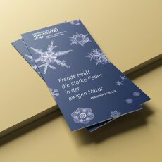 Klappkarte Schneekristalle – mit Haeckels Schneekristallen auf blauem Grund