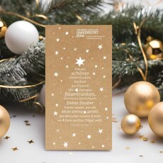 Klappkarte Sterne in Kraftpapieroptik zwischen goldenen Kugeln