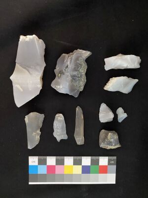 Doktorand Clemens Bock mit einem der gefundenen Steinartefakte.