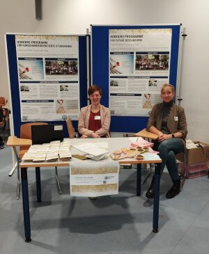 Stand des Honours-Programms mit Mitarbeiterinnen der Graduierten-Akademie