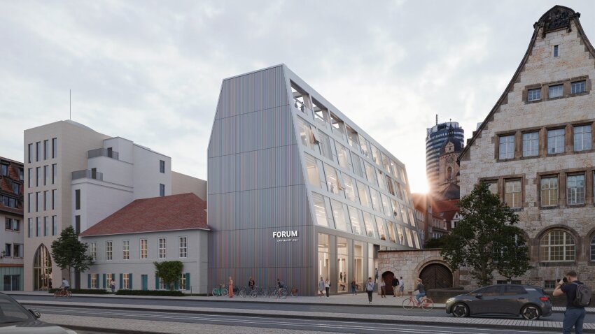 Science thrives on exchange. When researchers from different disciplines enter into dialogue with each other, new perspectives and fresh research ideas emerge. In order to visibly strengthen this exchange in Jena, the Carl Zeiss Foundation is enabling the construction of a unique communication and meeting centre at its founding location: the FORUM. With funding totalling 20 million euros, one of the foundation's largest single grants to the Friedrich Schiller University, a place that unites science in all its facets will be created between 2025 and 2027.
