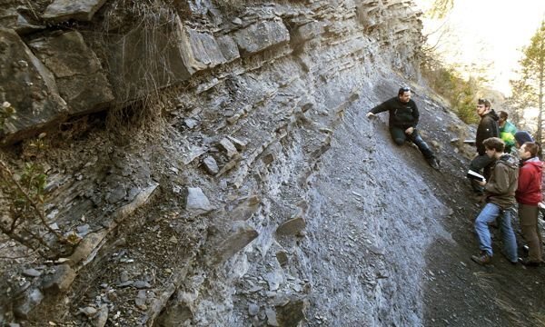 Ein Prallhang am Rande eines der zahlreichen Bäche, die dem Rio del la Nata zufließen, etwa 12 km östlich von Ainsa, erschließt eine etwa 7 m mächtige, horizontal lagernde Sandstein-Mudstone-Wechselfolge der Yeba-Formation (Ilerdian; frühes Eozän).