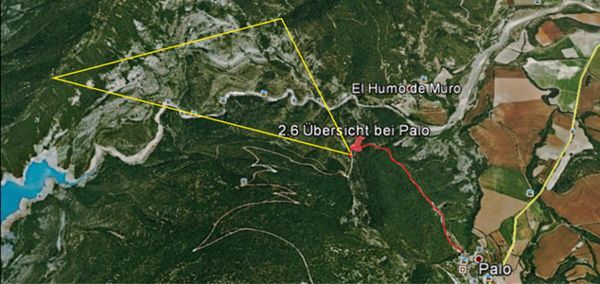 Ein Aussichtpunkt auf einer steinigen Forststraße ca. 1 km nw des Dorfes Palo bietet einen Einblick in die Stratigraphie und Struktur der prominenten Mediano-Antiklinale, die eine wesentliche Rolle in der Entwicklung des Ainsa-Beckens spielt, und die Hauptthema des folgenden Vormittags (Tag 3) sein wird.