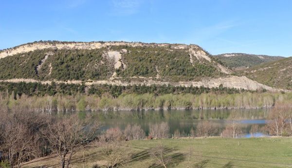 Abb. 4.2.1: Blick westwärts über das Tal des Rio Cinca zum Ainsa Quarry (Bildmitte rechts).