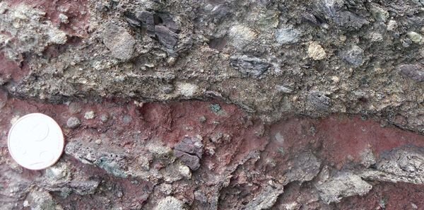 Rote Konglomerate, Sand- und Siltsteine sind an der Straße Castejon - Liri über mehrere 100 m Länge aufgeschlossen und auch an anderen Stellen prominent im Talkessel sichtbar. Die Tonsteine sind nur undeutlich laminiert, weil sie nahezu vollständig bioturbiert sind. Tonklasten-dominierte Konglomerate zeigen erosive Basen in die unterlagernden Silt- und Tonsteine und repräsentieren vermutlich fluviatile Rinnen. Die Schieferung ist deutlich ausgeprägt.