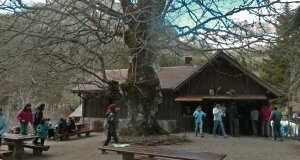 Weil inzwischen der Tag schon etwas fortgeschritten war, fuhren wir weiter nach Norden, nahezu ohne Halt durch Hecho und an Siresa vorbei, durchschnitten in einer dramatisch engen, tief eingeschnittenen Schlucht die Decke der kretazischen Plattformkarbonate und erreichten am oberen Ende der Schlucht den auf einer alpinen Wiese knapp unter dem Pyrenäenhauptkamm idyllisch gelegenen Campingplatz Refugio Selva de Oza. Dort verschwand die Straße, wie schon gestern 100 km weiter östlich, wieder unter Schnee und Matsch. Der Exkursionsleiter lud deshalb die Teilnehmer zu einem Kaffeegetränk ihrer Wahl ein (Abb. 6.3.1.), auch um Zeit zu finden, sich in der spektakulären alpinen Landschaft geologisch zu orientieren.