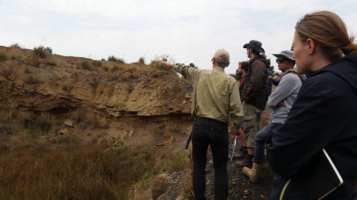 Image: C. HeubeckAm Nachmittag erreichten wir Gesteine der Transvaal Supergroup und damit Sedimente im Alter von 2,6 Milliarden (2.600.000.000!) Jahren. Wir tasteten uns durch einen ehemaligen Eisenbahntunnel an der N4 in der Nähe von Waterval Boven und wurden mit einem wunderschönen Ausblick auf den Elandsrivier belohnt, der dort über die Felswand des Daspoort-Quarzits stürzt.