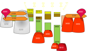 Abb. 3.2.1: Die ca. 15 km mächtige Abfolge gliedert sich wie links dargestellt.