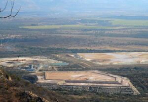 Abb. 3.4.1: Halde der Fairview-Mine, in denen im heap-leaching Verfahren durch Säure Gold aus dem gemahlenen Erz gelaugt wird.