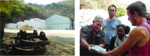 Image: C. HeubeckChris Rippon, Chefgeologe von Sheba Mine, erläuterte im historischen Geology Office die Vererzung und die Abbaugeschichte der Mine. Er ließ typische Gesteinsstücke und vererzte Proben von Hand zu Hand gehen. Während eines anschließenden Rundgangs erfuhren wir über die Aufbereitungsmethoden und die Profitabilität der seit 1888 ununterbrochen in Betrieb befindlichen Mine. Dies macht Sheba zum Weltrekordhalter ! Der Goldrausch von 1885 basierte ursprünglich auf der Aufarbeitung des Flussbetts des Kaap Rivers, blieb aber wegen des unangenehmen Klimas und der (damals weit verbreiteten) Malaria eine kleine und saisonale Angelegenheit. Inzwischen ist alluviale Goldsuche als illegaler, unreglementierter Abbau durch illegale ZamaZamas, meist Ein- oder Zweimann-Betriebe, in fast allen Bachbetten des nördlichen BGB wieder weit verbreitet.