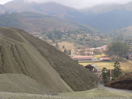 Abb. 3.5.1: Bulembu mit einer Serpentinithalde im Vordergrund.