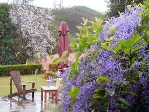 Image: C. HeubeckAbb. 3.5.4: Flieder, Kirschbäume, Magnolien und Hibiskus schmücken die Vorgärten Bulembus.