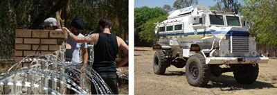 Abb. 5.3.4: Razorwire und ein Casspir (ein gepanzerter Truppentransporter der Polizei).