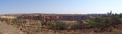 Abb. 5.4.1: Panoramabild am Aussichtspunkt der Cullinan Mine mit Blick auf den Ausbiss des ehemaligen Tagebaus.